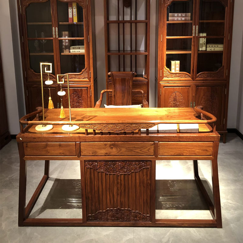 Jako profesjonalny producent chcielibyśmy zapewnić Państwu wysokiej jakości biurko z litego drewna w stylu klasycznym. Ten produkt został starannie wykonany w fabryce Chuantianjiang. Dzięki doskonałej jakości, niepowtarzalnemu wzornictwu i znakomitemu kunsztowi stał się najlepszym wyborem do Twojego gabinetu. Wykonany jest z jeża czerwonego drzewa sandałowego, które jest cennym darem danym nam przez naturę. Czerwone drzewo sandałowe jeża ma twardą, delikatną i piękną fakturę, jak zwój starannie narysowany przez naturę, a każda linia zawiera ślady i historie lat. Jego kolor jest głęboki i ciepły, emanuje prostą i elegancką atmosferą, co sprawia, że ludzie są nim zafascynowani.
